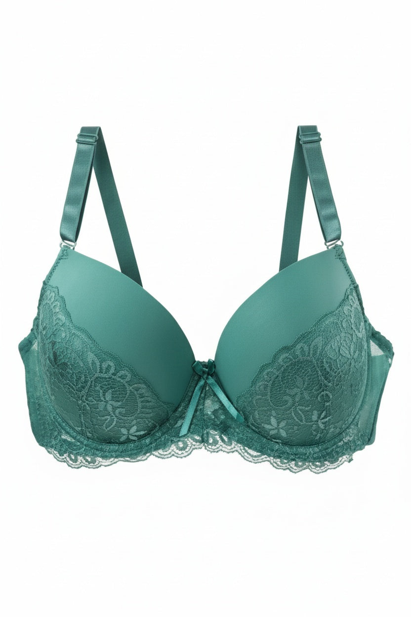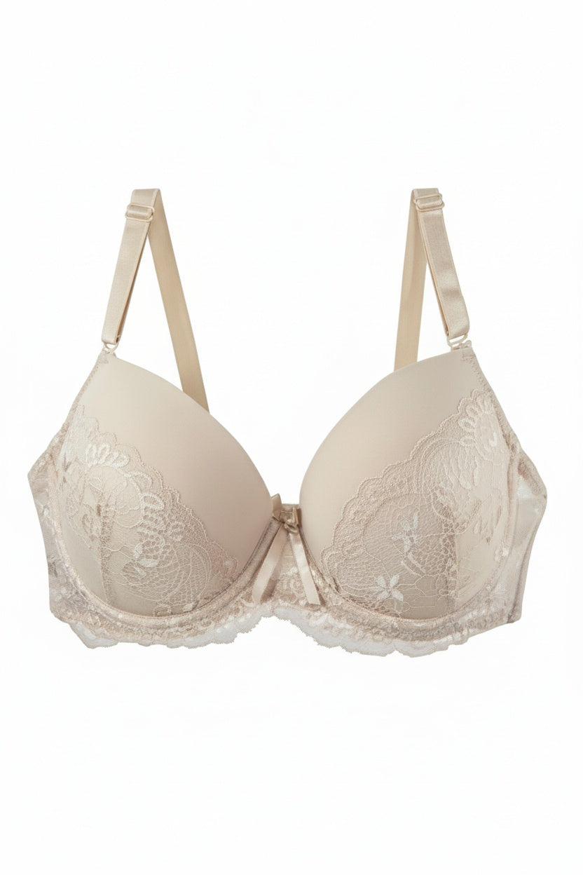 Sus copas con aro y diseño push up ofrecen una elevación superior, aportando volumen y una forma redondeada que realza tu figura bajo cualquier prenda. El delicado encaje añade un toque sofisticado y femenino, mientras que su confección sin costuras asegura un ajuste suave, sin marcas y con total discreción incluso bajo telas ajustadas.